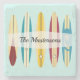 Vintage longboards themed stone coasters with customisable text.