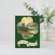 Vintage illustration Victorian Saint Patrick's Day Greetings holiday image. An Irish landscape with a castle next to a river at sunset inside a large golden lucky shamrock. Four Leaf clovers represent good luck!