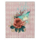 Beautiful digital art collage features "glowing" teal and ivory luna moth with vintage floral bouquet on distressed pink harlequin pattern background