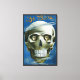 This vintage magic poster has a giant skull with two faces in the eye sockets and smoke swirling around. The initials AB are superimposed in the nose socket and "de Biere the Mysterious" is written were the teeth should be.