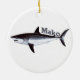 Lightweight, smooth, pure white ornament with nice sheen. Perfect size to be seen from across the room ... and to attract closer inspection! Price was great for ordering enough for the whole family! Clear, bold black design just as requested. Matches the order exactly. Just so nice!
