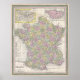 Vintage Map of France, 1853 Poster