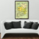An antique atlas page with a vintage map of the country of Ireland as it was between the years 1602-1714. I enhanced the colors a bit and put it on a black background that acts as a built in frame.