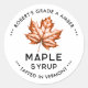Editable homemade maple syrup canning label featuring a vintage style maple leaf illustration. Make your own canning labels for your favourite homemade recipes. Perfect for preserves, homemade gifts or as kitchen pantry organiser.