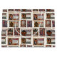 Colorful festive and unique holiday collage featuring Victorian-era illustrations depicting Christmas scenes during the middle ages and Medieval period. Cards feature scenes of knights in armor, jesters, winter village scenes, merry making and friars feasting with greetings and poems in elaborate Olde English script.