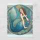 Vintage Mermaid Art Nouveau Retro Deco Teal Postcard