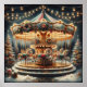 Vintage Merry-Go-Round Whimsical Christmas Poster