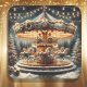 Christmas stickers. Pretty ai watercolor style illustration of an old-fashioned vintage merry go round covered in snow on a nostalgic winter night.