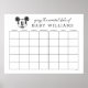 Anticipate the arrival of the little one with this charming guess the due date chart, perfect for a Mickey Mouse themed baby shower celebration. This delightful activity sign features iconic Mickey Mouse ears at the top, adding a touch of timeless Disney magic to your event decor. The central area provides a clear grid layout, designed for guests to write their names and predicted birth dates for the baby-to-be. The warm, neutral background ensures the design complements a variety of party settings, while the bold, easy-to-read text clearly states "Guess The Arrival Date of BABY [Name]". This engaging game encourages guest interaction and creates a fun focal point, offering a special keepsake for the parents as they look back on who guessed closest to the baby's actual birth date.