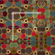 Vintage Mid-Century Circles Pattern Fabric. Blue, green, grey, purple and yellow circles.