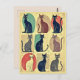 Postcard in nine stylized cats arranged in a grid pattern, each set against different colored backdrops. The cats feature varying coat colors and patterns, giving each one a unique appearance.