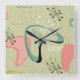 Vintage Mid Century Modern Sputnik Pink Green Square Wall Clock