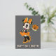 This retro vintage inspried design features Minnie Mouse wearing a skeleton shirt with orange skirt and bow as she holds out a cute jack-o-lantern in one hand. Wear this on a cozy t-shirt, carry on a trick-or-treat tote bag, or send Halloween greetings with a personalized card! Shop this design on more custom products on Zazzle!