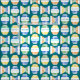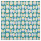 Add a vintage touch to your next sewing project with this fabric that features illustrations of retro style white glass kitchen mixing bowls illustrated with polka dots in royal blue, yellow, orange and green.