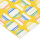 Add a vintage touch to any table with this patterned tablecloth that features illustrations of retro style white glass kitchen mixing bowls illustrated with polka dots in royal blue, yellow, orange and green.