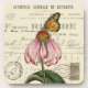 Lovely coasters with a lovely monarch butterfly on a pink cone flower, collaged with antique French documents and ephemera. This original design was made by scanning in and modifying antique documents and illustrations.