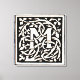 The Arts and Crafts style was a search for design that was beautiful, and in reaction against machine-production. Thus, the monogram M in our design, an arts and crafts inspired M monogram, is simple, rugged, and a purposeful rough-hewn quality, an almost medieval M quality, as if it were printed with a hand-made woodcut.