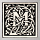 The Arts and Crafts style was a search for design that was beautiful, and in reaction against machine-production. Thus, the monogram M in our design, an arts and crafts inspired M monogram, is simple, rugged, and a purposeful rough-hewn quality, an almost medieval M quality, as if it were printed with a hand-made woodcut.