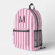 Vintage Monogram Pink & White Stripes Striped Printed Backpack