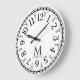 A home decor clock with vintage scrollwork details give this monogram wall clock a soft, feminine elegance with a classic French flair. The curved black numerals feel playful but refined, while the bold center monogram makes it uniquely yours. A beautiful accent for offices, bedrooms, your apartment, foyers, or anywhere you want a touch of Parisian romance with timeless style. The playful scrollwork also makes it a suitable style for a nursery.