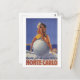 This is a reproduction of a vintage travel poster for Monte Carlo by Louis Icart. "Quelle joie de vive l'ete a Monte Carlo." What a joy to live in the summer in Monte Carlo. It features two beautiful women in swimsuits sitting on a beach ball.