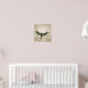 Square poster print features beautiful vintage iridescent moth illustration with leaves overlaid on distressed brown and white antique wallpaper background. Available