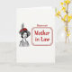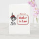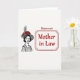 This design shows a retro-style portrait paired with a loving message on a bright white background, using mostly black with rich red accents ❤️. On the left, a stylish woman is shown from the chest up, her dark hair neatly framing a calm face with a soft smile and red lips that suggest quiet affection. She wears a wide-brim hat topped with a red accent and a light, feather-like detail, and her polka-dot blouse adds a friendly, classic touch. On the right, the word “Dearest” sits near the top in black text, setting a warm, respectful tone like a fond note between family members. Below it, “Mother in Law” appears larger in red, written in flowing lettering that feels tender and close. A stepped red border surrounds the main words, giving the message a framed, gift-like look with a gentle flourish 🌼. The overall layout is balanced, with the portrait anchored on the left and the red-framed wording on the right against the open white space. The red border is made of neat, layered right angles that step inward around the central phrase.