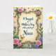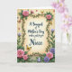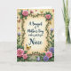 This design shows an aged, parchment-like cream panel in the center, surrounded by a curling border of green vines and leafy sprigs that feels like a gentle garden hug ❤️. Clusters of soft pink flowers and light lavender blooms nestle into the greenery, with petals shaded to look velvety and touchable. A few butterflies drift through the scene in saffron yellow and warm orange, edged in black, as if they’re circling the flowers together on a spring afternoon 🌼. The overall look suggests closeness and care, like giving someone a quiet moment of attention without needing many words. Across the middle of the cream panel, a message appears in dark indigo lettering, centered and easy to spot against the worn paper texture. The text reads, “A Bouquet of Mother’s Day wishes just for you Niece,” with the lines stacked neatly so they sit comfortably inside the vine frame. Soft lighting highlights tiny leaf veins, small speckles on the aged background, and the bright butterflies hovering near the top corners.