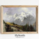 Vintage muted mountain landscape painting. Rustic cabin wall decor.