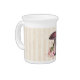 Pretty vintage look beverage pitcher design features pink tinted mushroom with pink florals and lush green leaves on a vintage striped background