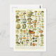 Vintage Mushroom Botanical Illustration Postcard