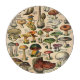 Stylish round glass cutting board with vintage illustrations of assorted mushrooms. Customize to add your own text. Makes a great gift idea.