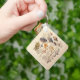 The key chain is made of metal and really sturdy. The flower design is really cheerful. The logo and colors are clear and crisp!