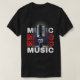 A stylish and bold T-shirt design featuring a retro microphone with the word "MUSIC" creatively highlighted in striking colors and typography. Perfect for music lovers, singers, and vintage enthusiasts, this design radiates passion for rhythm, melodies, and classic vibes.