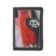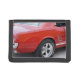 A red, vintage Mustang is featured on this tri-fold wallet.