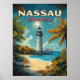 Capture the idyllic beauty of Nassau, Bahamas, with this stunning poster. Designed in the style of an oil painting, this travel poster features a picturesque lighthouse and a serene beach with palm trees. Under the sunny blue sky with radiant sun rays, a cruise ship can be seen in the background. Perfect for collectors and travel enthusiasts, this poster brings the tropical charm and vibrant atmosphere of Nassau to life. 🌞🌴🚢