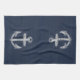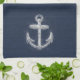 Vintage nautical maritime anchor in a white "sketched" look, on a dark navy blue with some plank wood-look background. A nice gift for the sailor or boat enthusiast. All Designs Copyright © 2012 www.CuteComfy.com
