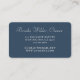 This vintage nautical style business card features a blue shark with calligraphy saying, and elegant rounded corners. You may choose from standard or rounded corners. This style has a woodcut feel to it, and the rustic earthy type is from the 1600's, with a hand carved vibe. Dark blue on the back with contact information in white type.