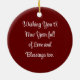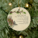 Pretty, vintage picture of a home in winter, with a branch full of pine cones, is featured on this New Year ornament. Front of ornament features a Happy New Year poem and back of ornament reads, "Wishing You A New Year full of Love and Blessings too". This ornament makes a lovely decoration on your Christmas tree or give as a gift!