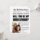 Make your 'Big News' official with this Vintage Newspaper Bridesmaid Proposal Invitation! Designed with a classic editorial layout and a timeless black-and-white aesthetic, this invitation allows you to feature a personal photo of you and your bestie. It's the perfect 'Will You Be My Bridesmaid?' card for brides who love retro charm and unique storytelling. Easily customize the headlines, date, and personal message to create a one-of-a-kind keepsake. Printed on high-quality cardstock, this newspaper-style invite is a trendy way to ask your bridal party to stand by your side!