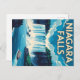 A classic vintage travel poster captures the powerful Niagara Falls, with two tour boats navigating the rushing waters below, all under a dynamic blue sky with soft clouds. "NIAGARA FALLS" is prominently displayed at the top.