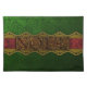Decorative illuminated letters spell out Noel in red and gold on an ornate cutwork ribbon banner and a glowing green damask background. Banner and letters are given added depth and richness with texture and shadows. Perfect for an elegant vintage-inspired Holiday theme. Matching mug, plate and napkins available.