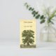 Custom business cards with vintage art of a giant, towering oak tree with brown letters on a faux parchment background.