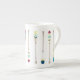 This mug is imprinted with a Bach Solos Suite for Cello. It was purchased as a thank you gift for a professional cellist friend who often performs this work. The cup is made of a high-grade ceramic and is fairly light. The walls are not too thick and it is a small to medium size. It's well finished, has a high-gloss glaze, and looks very elegant. The Bach Solo Suite score on the example I received was clear and had high contrast. Even though the staffs were small, the music was easy to read. The cellist who received this cup immediately knew what the music was as soon as she set eyes on it.