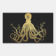 Vintage Octopus Gold Black Ink Coastal Nautical Rectangular Sticker