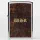 handy vintage style pocket lighter features an antique chocolate brown leather image with faux antique gold decorative lettering. Custom Personalized Beautiful Antiqe Replica style. Great for history teacher, historian, vintage guy or manly man. Add your custom text online preview.