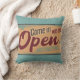 Vintage open business sign cafe garage teal red throw pillow