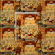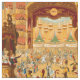 This is a digitally enhanced print of an antique Victorian era 1882 to 1883 repeating pattern of a masquerade ball at an Opera House. Figures in fantastic costumes dance and cavort while an orchestra plays up on center stage.
