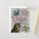 This vintage collage layers a pensive kitty cat with vintage pink orchids and a vintage bluebird with a letter to deliver over a handwritten letter.