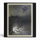 This old movie poster depicts the original alien invasion. It features a city scene with buildings , people and cars and an alien ship atop long legs and eyes, ready to attack. In colors of black, gray and white.